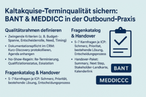 New Kaltakquise -Terminqualität sichern: BANT & MEDDICC in der Outbound- Praxis Read More » August 26, 2025 Keine Kommentare